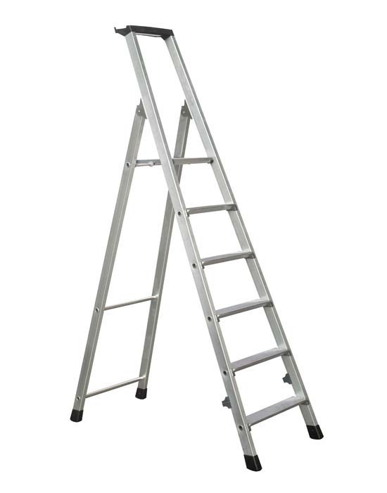 Алюминиевая стремянка Zarges Z300 6 ступеней 42456 с закреплёнными завальцовкой ступенями. Удобная и устойчивая стремянка с практичным лотком и прочным, запатентованным креплением ступеней к стойкам. Настоящая классика.