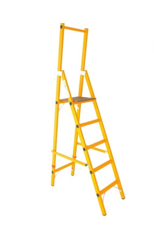 Диэлектрическая стремянка ЗЭП 9 ступеней ССВ-3,6-55 - это стремянка с вертикальной опорой, которая применяется, когда необходимо установить ее к вертикальным поверхностям. Рабочая площадка имеет фиксатор из нержавеющей стали. Для изготовления тетивы используется диэлектрический стекловолоконный профиль прямоугольного сечения. На верхних концах тетив установлены пластиковые (ПВД/ПНД) заглушки, на нижних – противоскользящие эластополимерные опоры. Нижняя ступень имеет дополнительное усиление в виде металлических распорок, что повышает прочность конструкции. Ступени изготовлены из профиля 36х26 мм с противоскользящими ребрами.