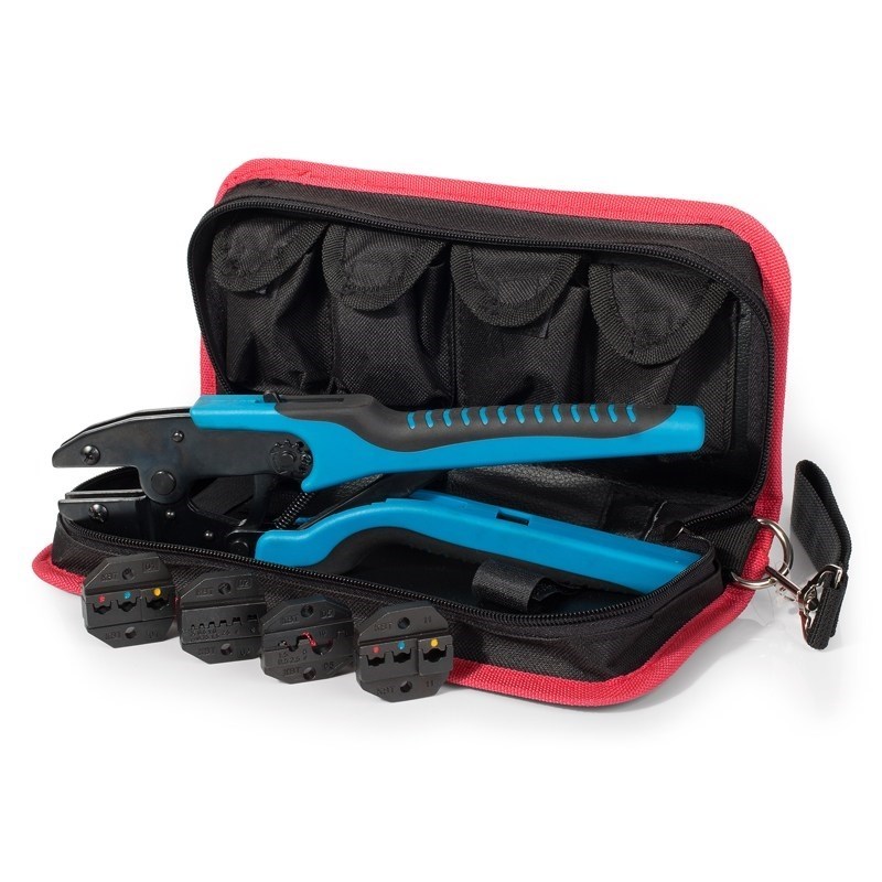 Набор КВТ СТВ+4 пресс-клещи в сумке с набором матриц рассчитан на 5 матриц. Дополнительные матрицы для опрессовки приобретаются отдельно. Совместимость: все матрицы серии МПК (КВТ). Усиленная конструкция пресс-клещей с надежной механикой. Храповой механизм, обеспечивающий блокировку обратного хода до завершения полного цикла опрессовки. Устройство разблокировки храпового механизма. Регулятор прижимного усилия матриц. Удобные эргономичные рукоятки. Прочная и удобная сумка с двумя карманами на лицевой стороне, кистевым ремнем и креплением на пояс. Материал сумки: водонепроницаемый полиэстер 1680D Оксфорд.