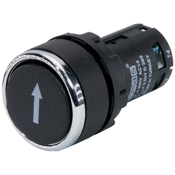 Нажимная моноблочная кнопка EMAS черная с вертикальной стрелкой, 22 мм, IP 40 (1НО+1НЗ) MB102DHOD | нет | 1НО+1НЗ | черный | |