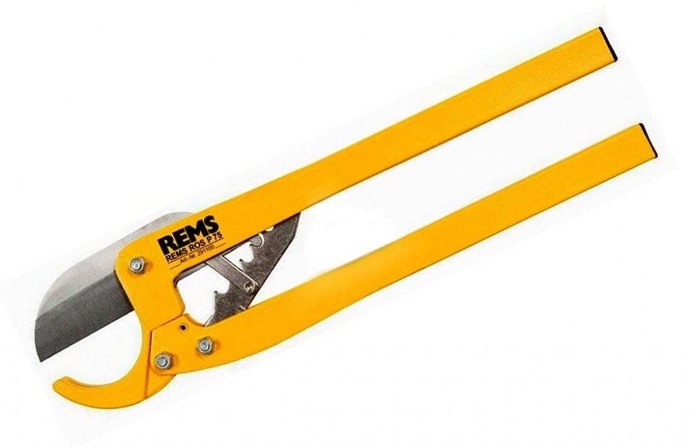 Ножницы для резки труб REMS ROS P 75 P - это удобный высококачественный инструмент для ровной резки труб. Также можно использовать для резки тонкостенных труб. Прочный алюминиевый корпус. Сменные, специальные закаленные клиновидные лезвия. Отрез ровно под прямым углом и без грата, благодаря точному упору трубы. Резка без стружки - никакой стружки в трубе не остаётся. Быстрый возврат лезвия. В комплект входит лезвие для данной модели ножниц.