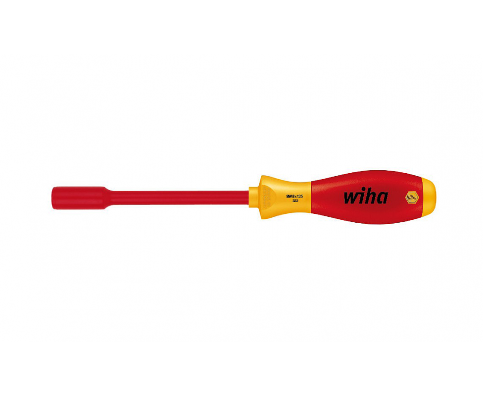 Отвертка Wiha SoftFinish electric HEX nut 322 6,0x125 00857 - диэлектрическая отвертка HEX с внешним шестигранником и жалом из высококачественной легированной стали. Защитное изоляционное напыление гарантирует безопасность (VDE и GS) при работе с деталями под напряжением до 1000 В. Интегрированная защитная изоляция.
