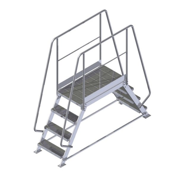 Переходный мостик ALUR МП-0,54х1,5х1,25 обеспечивает безопасный переход над конвейерными лентами, используется для обслуживания разнообразного оснащения на складах, в магазинах, на производстве.