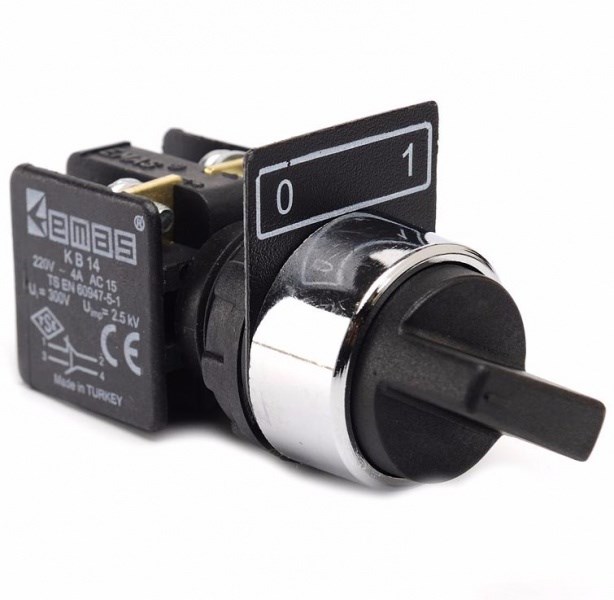 Переключатель EMAS 0-1 с фиксацией, угол поворота 60° (1НО) KB34S2 служит для отключения и включения электрических цепей низкого напряжения поочередно. Например, проходной переключатель предназначен для удобства управления освещением в различных комнатах, лестницах, коридорах. Такой переключатель монтируют между этажами, возле дверей помещений с несколькими входами.