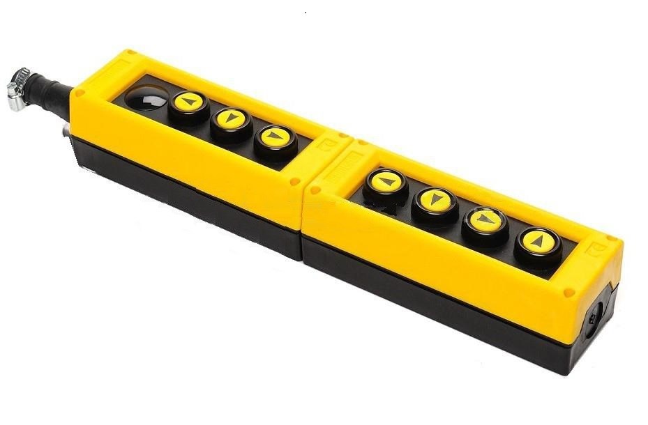 Пульт управления EMAS PVK7E предназначен для управления кранами, кран-балками, тельферами, цепными и канатными талями, мостовыми и козловыми кранами. Может иметь несколько вариантов исполнения: двух, трех, четырех, пяти, шести, семи, восьми, девяти, десяти, одиннадцати и двенадцатикнопочные, включать аварийный останов, аварийный сигнал, сигнал, ключ марку, кнопку (переключатель) вкл / выкл питания, световой фильтр, клавиши увеличения или уменьшения скорости работы двигателя, двух или четырех позиционные джойстики. Изготовлен из высококачественного пластика армированного стекловолокном,