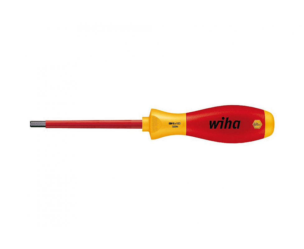 Шестигранная отвертка Wiha SoftFinish electric HEX 323N 6,0x100 30365 - диэлектрическая отвертка HEX с внутренним шестигранником и жалом из высококачественной легированной стали. Защитное изоляционное напыление гарантирует безопасность (VDE и GS) при работе с деталями под напряжением до 1000 В.
