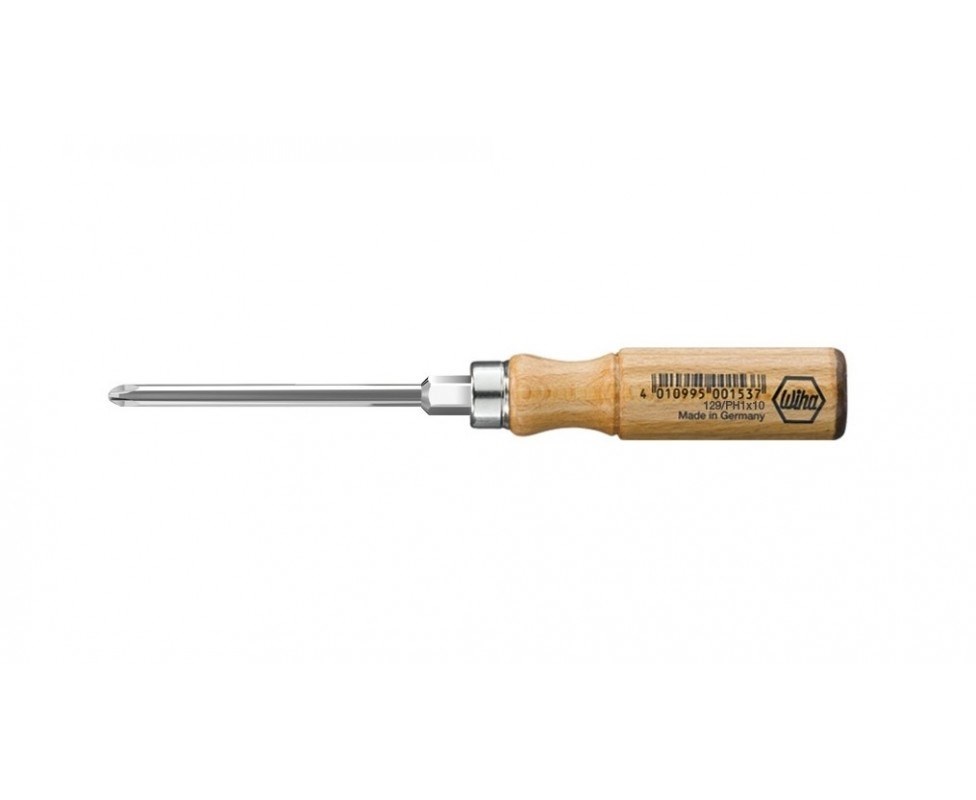 Столярная крестовая отвертка Wiha 129 PH 3x150 00059 с профилем Phillips из хромванадиевой стали и рукояткой из бука отлично подходит для повседневных работ в различных средах. Торец ручки защищен высококачественной кожаной крышкой. Используется в повседневных работах в промышленности и мастерских.