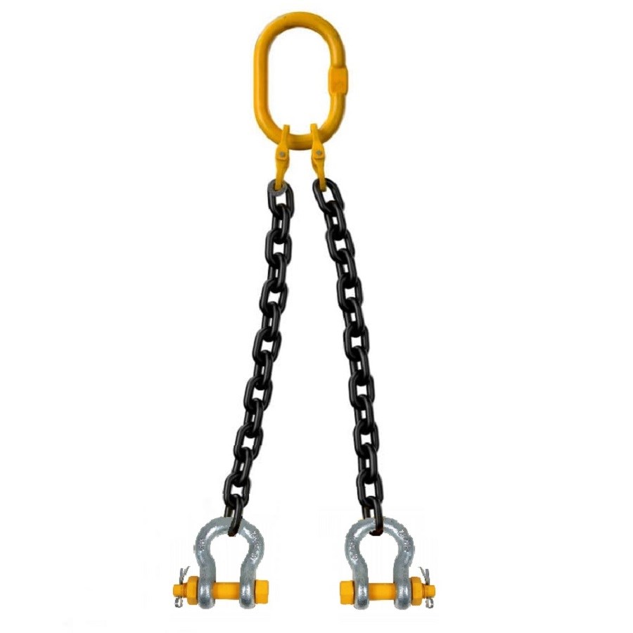 Строп цепной TOR 2СЦ г/п 1,6 т 0,5 м на концах скобы G-2130 1 т состоит из двух ветвей, соединенных овальным звеном, с такелажными скобами на концах.