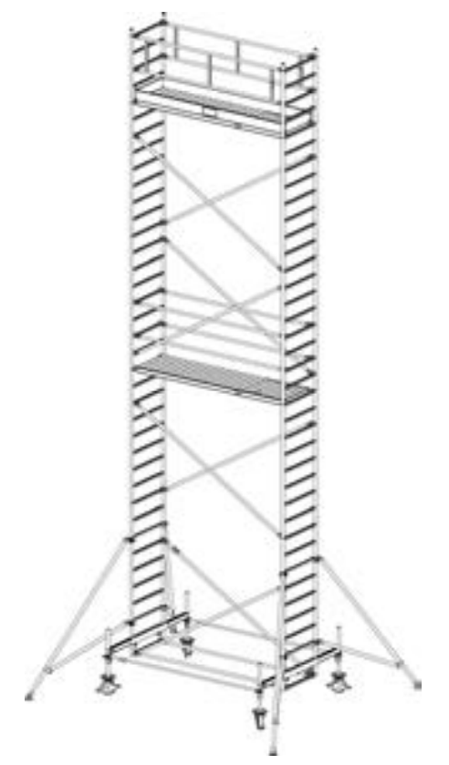 Алюминиевая вышка-тура Krause Stabilo 100 10,4м 751065 прошла проверку TUV, предельная нагрузка 200 кг/м2 (группа помостов 3) в соответствии с DIN EN 1004. Алюминиевое изделие универсального типа для рабочих высот до 14,00 м. В собранном состоянии вышка легко перемещается на базовой траверсе. Регулируемые по высоте ролики обеспечивают безопасность на неровных поверхностях. Платформы легко навешиваются между перекладинами (шаг - 25 см). Исключаются трудоемкие операции переналадки и демонтажа. При рабочей высоте изделия 7,40 м и более в комплект поставки включаются угловые опоры. Длина помоста: 3,00 м. Ширина помоста: 0,75 м.