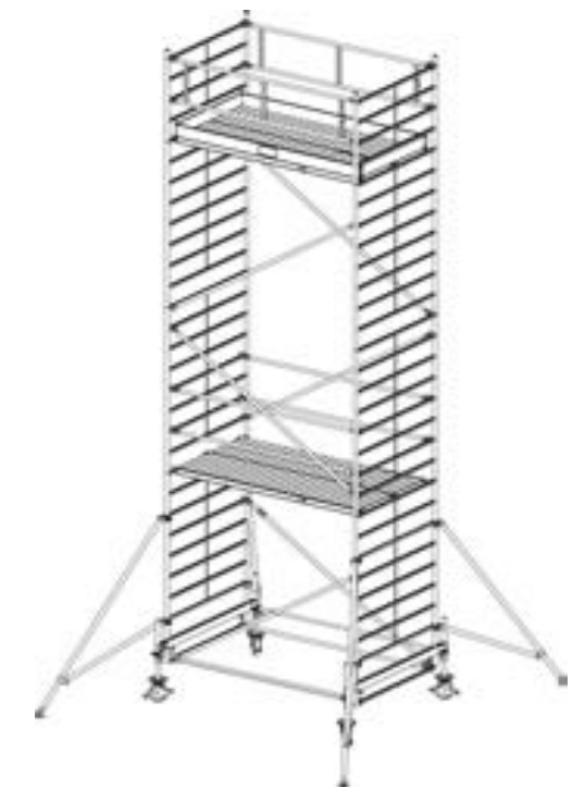 Алюминиевая вышка-тура Krause Stabilo 500 8,4м 735096 прошла проверку TUV, предельная нагрузка 200 кг/м2 (группа помостов 3) в соответствии с DIN EN 1004. Идеально подходит для рабочих высот до 14,00 м. Платформы легко навешиваются между перекладинами (шаг - 25 см). Исключаются трудоемкие операции переналадки и демонтажа. Площадка размером около 4,00 м2 безопасна и достаточно просторна для людей и материалов. Удобные вертикальные рамы легко монтируются одним человеком, профилированные перекладины обеспечивают безопасность подъема и спуска. При рабочей высоте изделия 8,40 м и более в комплект поставки включаются угловые опоры. Длина помоста: 2,00 м. Ширина помоста: 1,50 м.