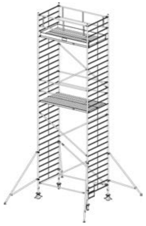 Алюминиевая вышка-тура Krause Stabilo 5000 9,3м 749093 прошла проверку TUV, предельная нагрузка 200 кг/м2 (группа помостов 3) в соответствии с DIN EN 1004. Идеально подходит для рабочих высот до 14,00 м. Платформы легко навешиваются между перекладинами (шаг - 25 см). Исключаются трудоемкие операции переналадки и демонтажа. Площадка размером около 4,00 м2 безопасна и достаточно просторна для людей и материалов. Удобные вертикальные рамы легко монтируются одним человеком, профилированные перекладины обеспечивают безопасность подъема и спуска. Угловые опоры входят в комплект поставки. Длина помоста: 2,50 м. Ширина помоста: 1,50 м.